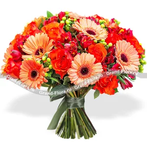 Цветочный рай - вип букет с красными розами и эвкалиптом
